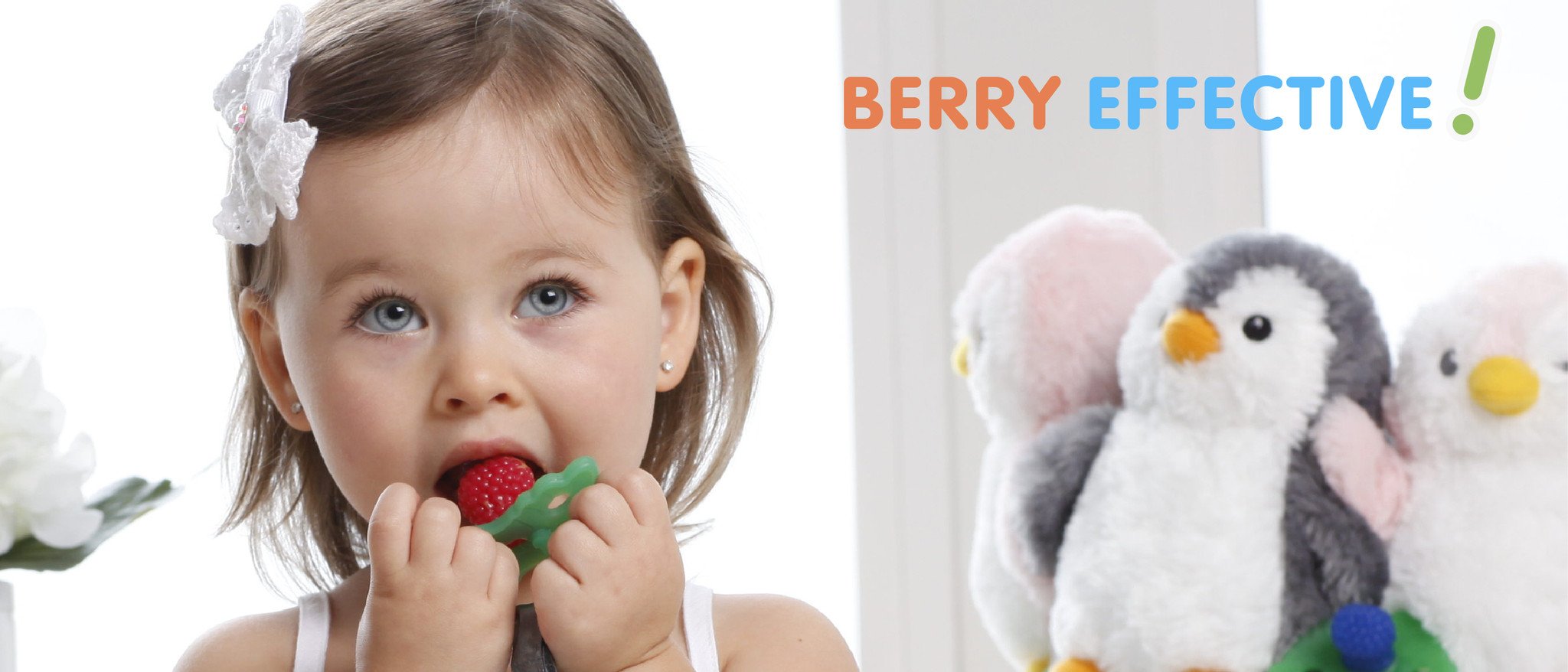 The RaZberry teether is a soft silicone teether constructed of one single piece, who's multiple textures are specially designed to soothe your baby's sore gums! Its loop shaped handle is perfect for little ones to grab onto, while its pacifier shape allows for it to also be used as a hands-free teether. It can even be frozen for extra soothing; The silicone will remain cold, but not harden. This nature inspired best-seller will also help introduce your little ones to healthy fruits at a young age